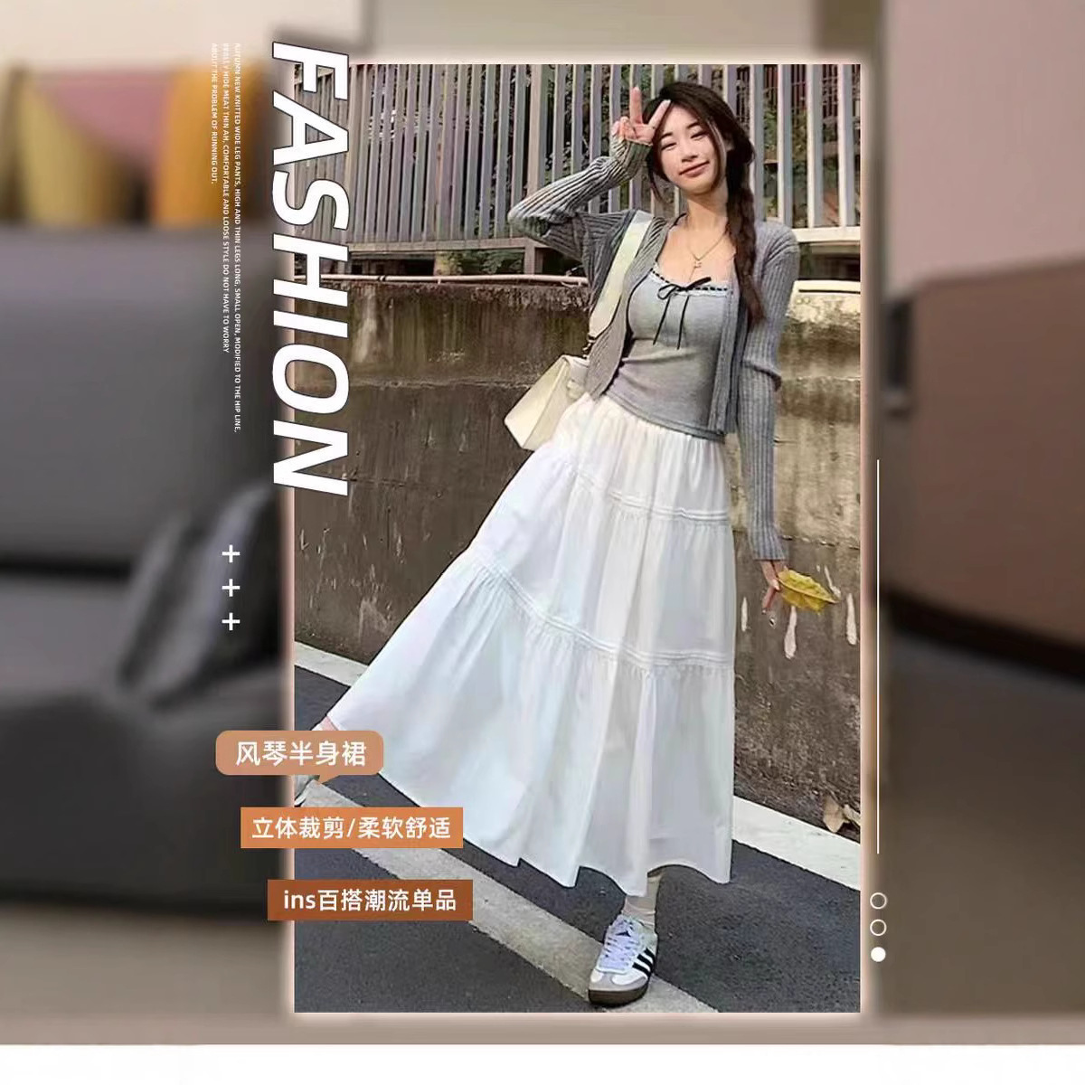 Rok Setengah Badan Warna Putih Ukuran Besar Musim Panas Rok Panjang Sedang A-Line Pinggang Tinggi Wanita Rok Kue Berbulu Ukuran Kecil Terlihat Kurus 5623 #
