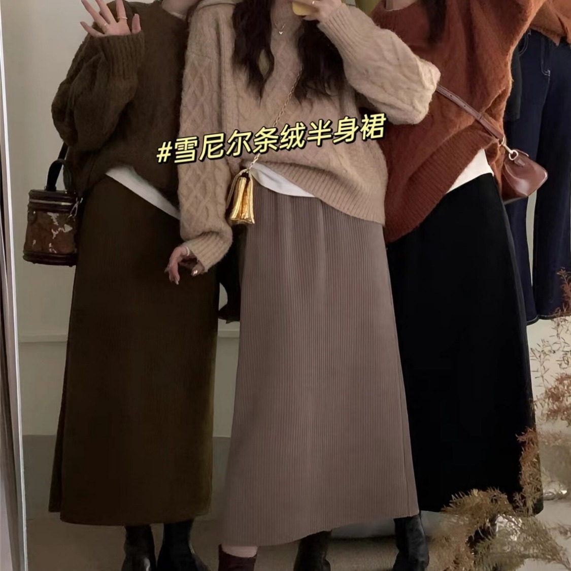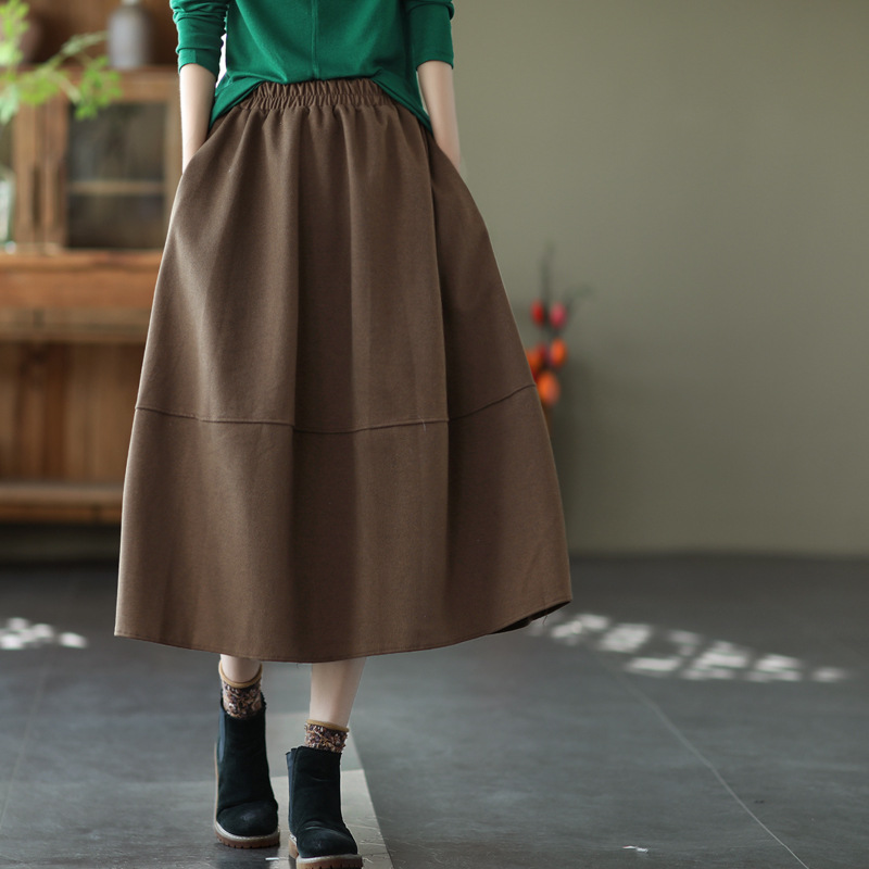 Rok rajut pinggang tinggi, pakaian luar menutup panjang setengah panjang musim semi dan musim gugur ukuran besar
