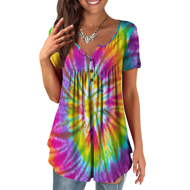 Rok gaya Eropa baru musim panas wanita kasual ikat celup dicetak ukuran besar longgar lengan pendek pabrik grosir