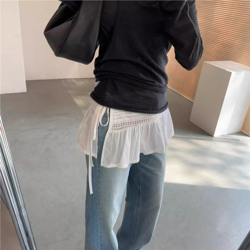 Celana kulot tidak beraturan gaya Eropa dan Amerika wanita dua potong palsu baru desain niche rok multilapis mode kulot satu potong