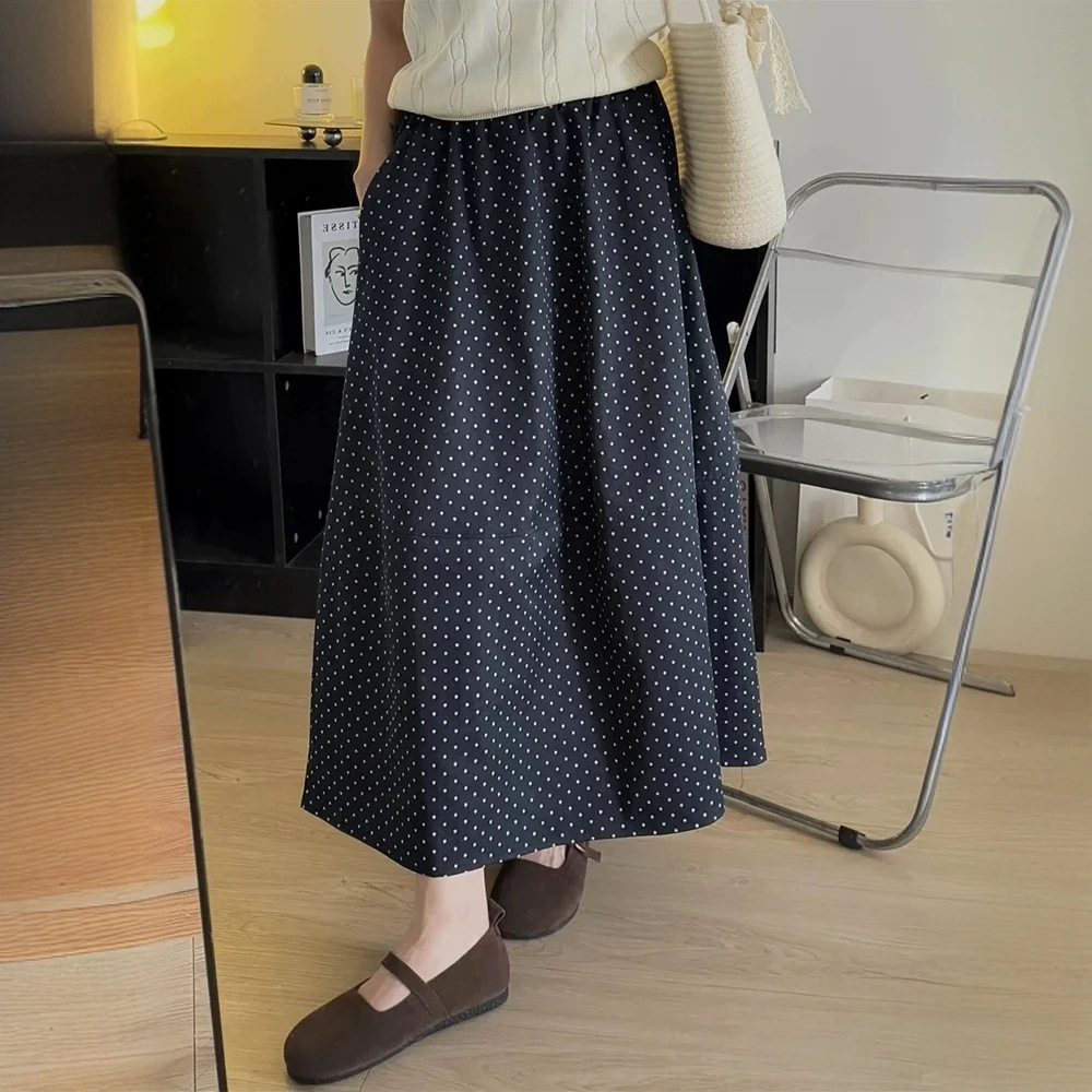 Rok Setengah Badan Polka Dot Manis dan Pedas Rok Pendek A-Line Terlihat Kurus Pinggang Tinggi Elegan Pinggang Ketat Warna Aprikot Santai Ukuran Besar Wanita Gemuk Musim Panas