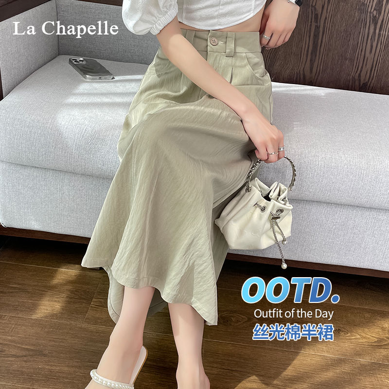 Rok Setengah Badan A-Line Terlihat Langsing Pinggang Tinggi Ukuran Besar Musim Panas Rok Panjang Sedang Model Tipis Mudah Dipadu Padan Elegan Model Baru 2025