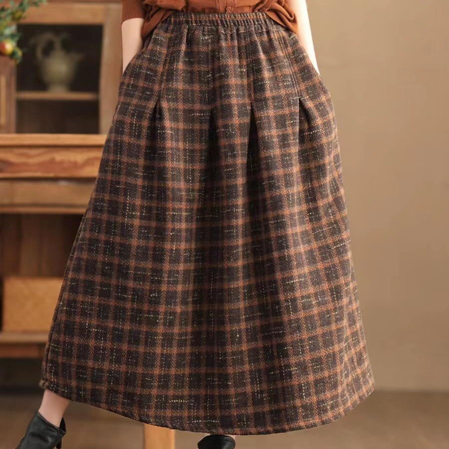 Pakaian Wanita Model Baru Musim Semi 2025 Rok Setengah Badan Kotak-Kotak Longgar Mudah Dipadu Padan Elegan Modis Wanita 4G1241131