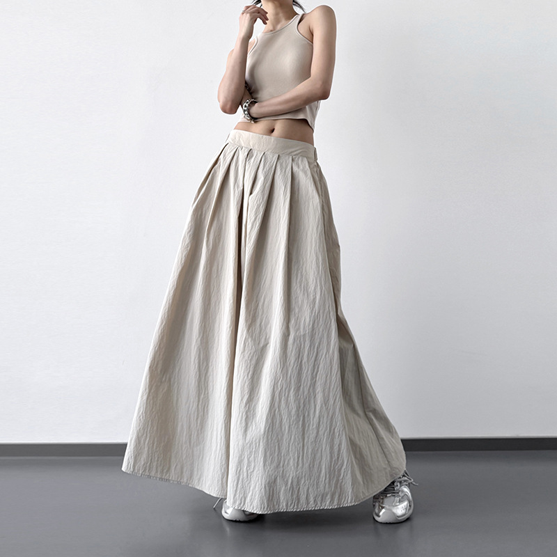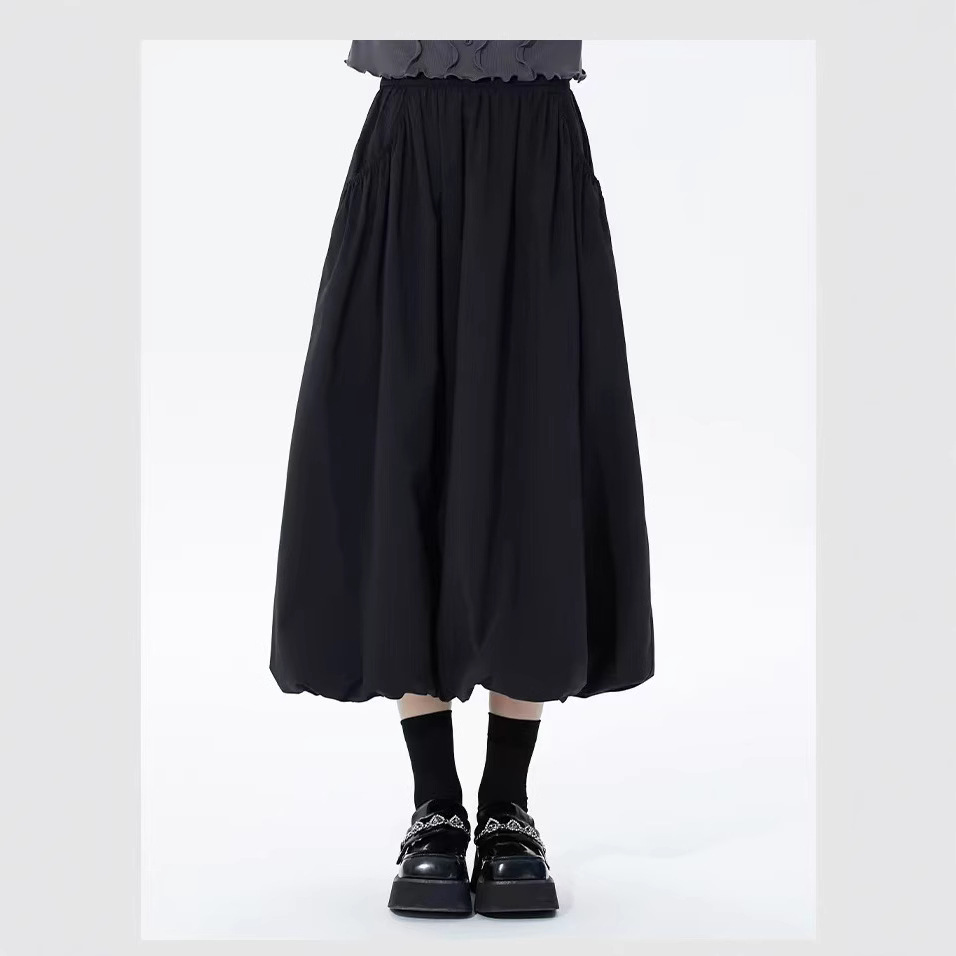 Rok Yamamoto Model Baru Musim Gugur Rok Setengah Badan Pinggang Tinggi Longgar Terlihat Kurus Lipit Warna Polos Elit A-line Rok Panjang Sedang Instagram