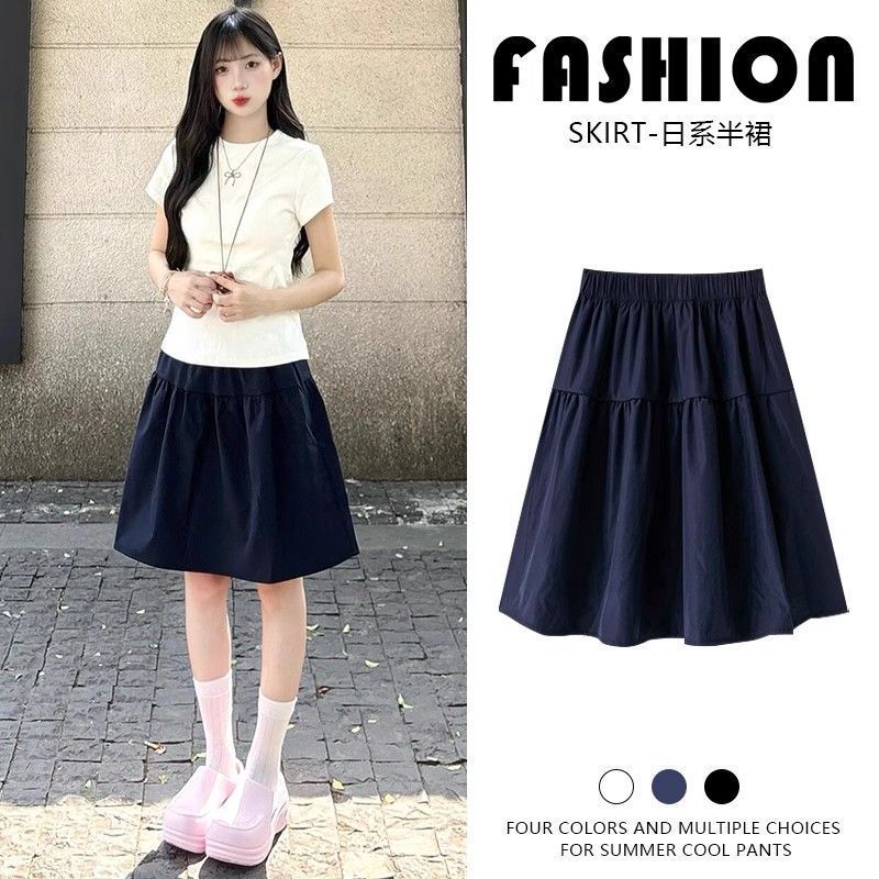 Rok Setengah Badan Gaya Jepang Rok A-Line Tipe Panjang Sedang Musim Semi Musim Panas Musim Gugur Murid Perempuan Gaya Korea Pria Kecil Mudah Dipadu Padan Pinggang Tinggi Longgar Terlihat Kurus