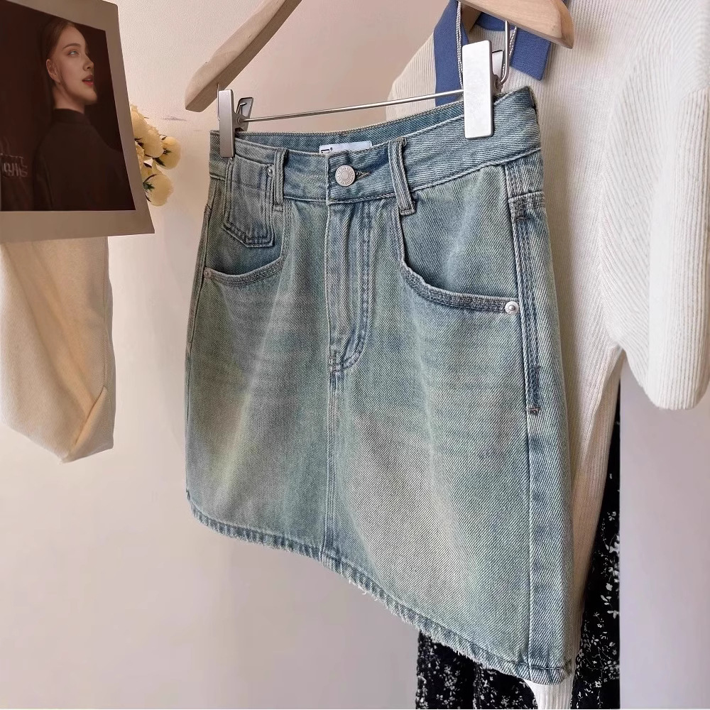 Rok Pendek Denim Retro Model Baru Tahun 2025 Rok Setengah Badan Menutupi Pinggang Huruf A Terlihat Ramping Pinggang Tinggi Mudah Dipadu Padan Longgar Musim Panas Wanita