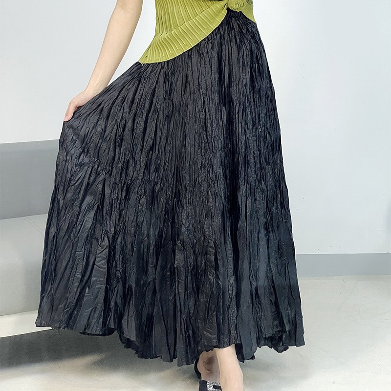 Rok Fudou Tekstur Lipit _ Rok Panjang Sedang Longgar Pinggang Tinggi Elit Kasual