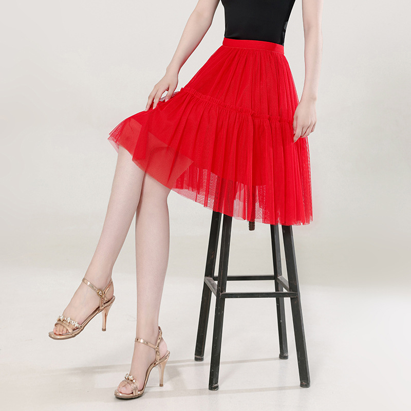 Rok pendek wanita, rok jala ayunan kebesaran ukuran besar, rok jala pinggang tinggi musim panas 2023