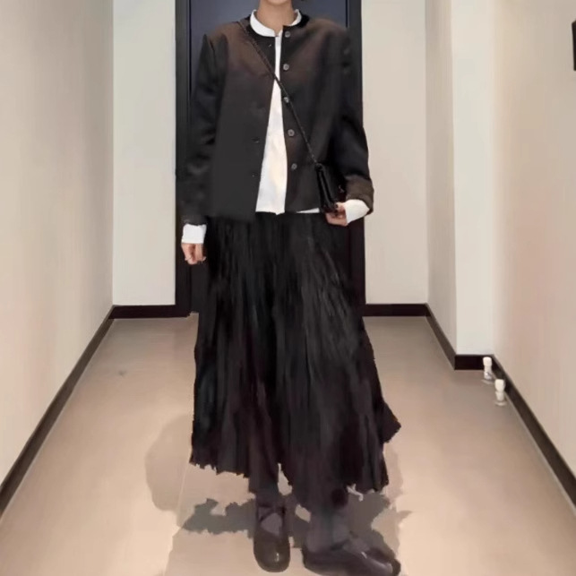 Pakaian Wanita Ukuran Besar Rok Setengah Badan Lipit Gaya Desain Model Baru Musim Semi 2025 Rok Payung Besar Berlipit Terlihat Langsing Pinggang Tinggi Gadis Gemuk