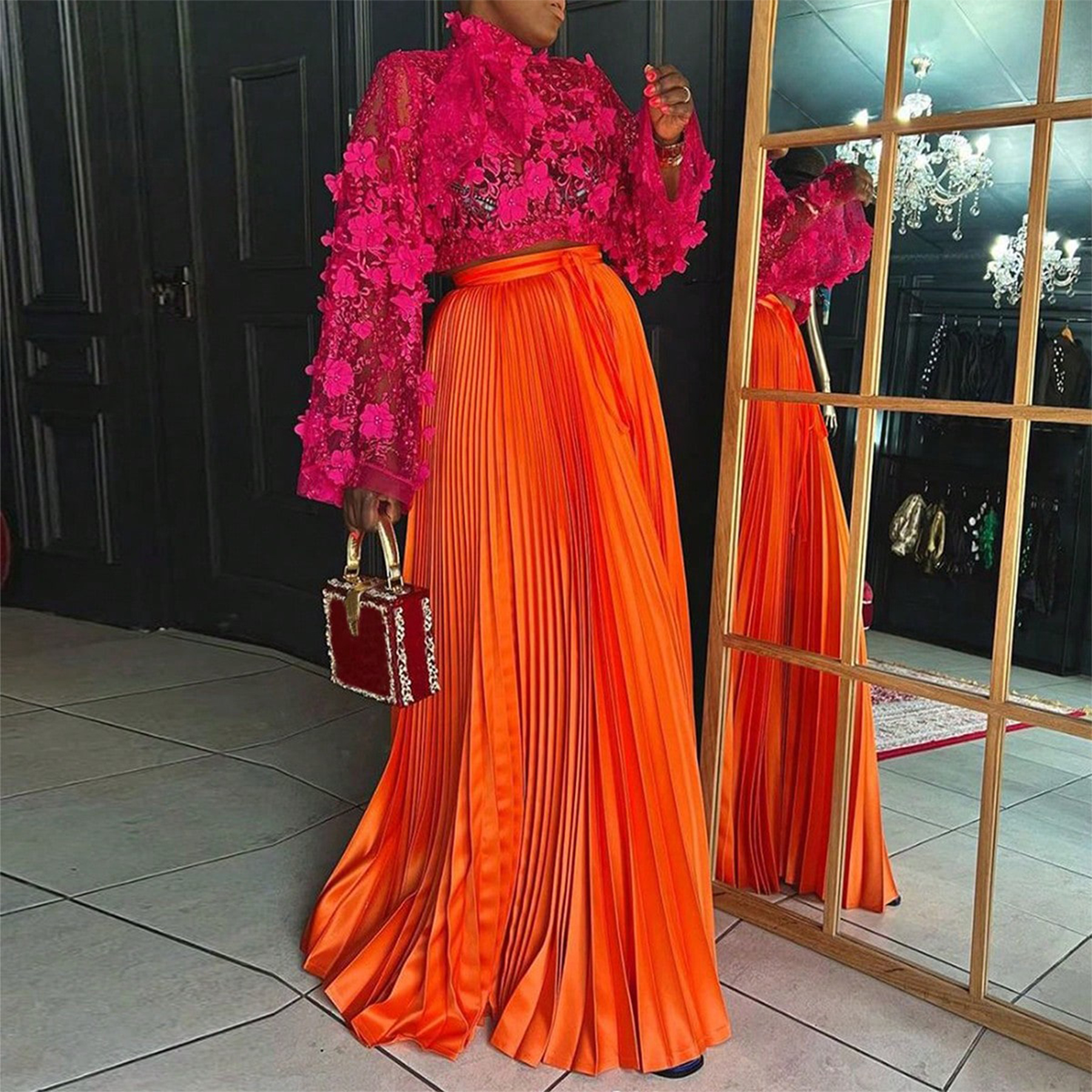 20053 Pabrik Penjualan Langsung Amazon Eropa Perdagangan Luar Negeri Fashion Pakaian Wanita Rok Setengah Badan Berlipat Sutra Imitasi Rok Ukuran Besar