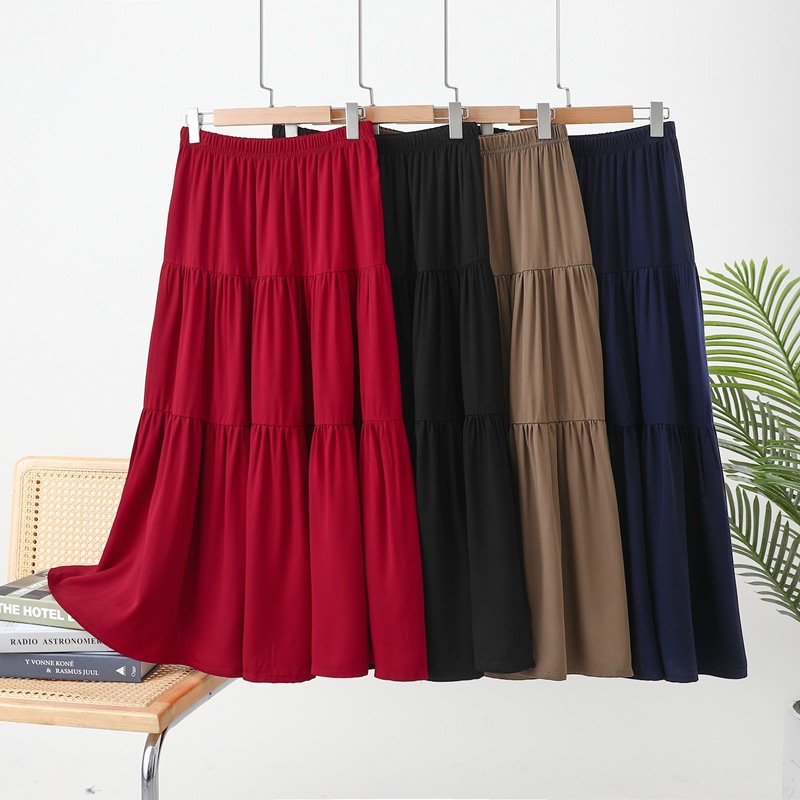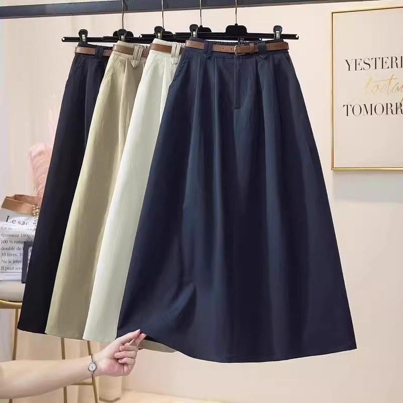 Rok Setengah Badan Gaya Santai Ukuran Besar Wanita Gemuk Rok Panjang A-Line Pinggang Tinggi Terlihat Ramping Menutupi Daging Longgar 2-300 kg Musim Semi Musim Panas Wanita