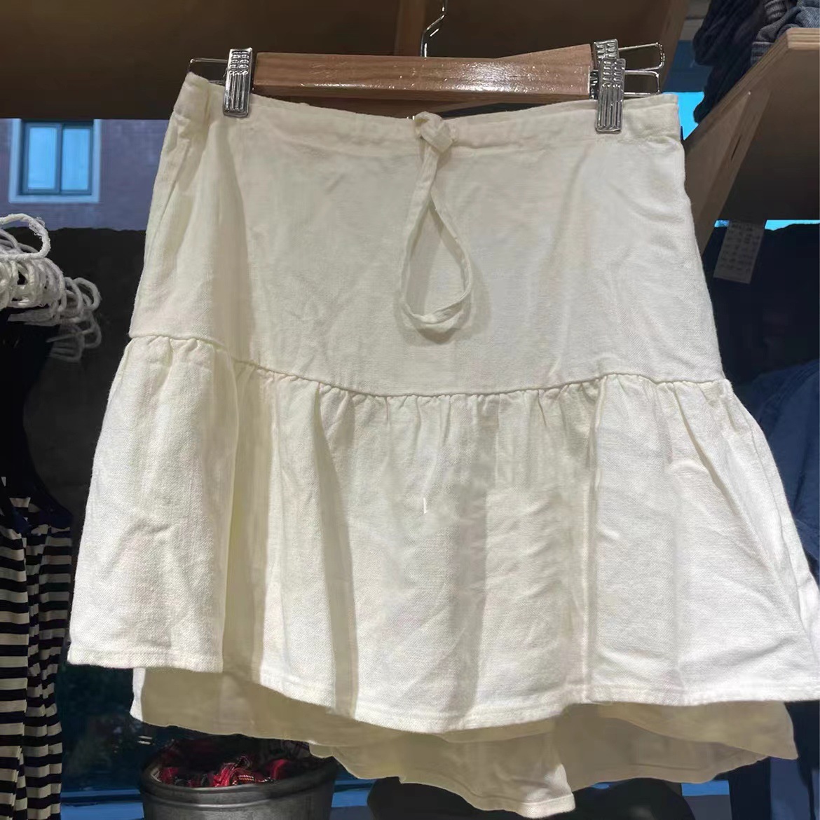 BM rok lipit katun dan linen, Rok bawah longgar tali serut pinggang tinggi