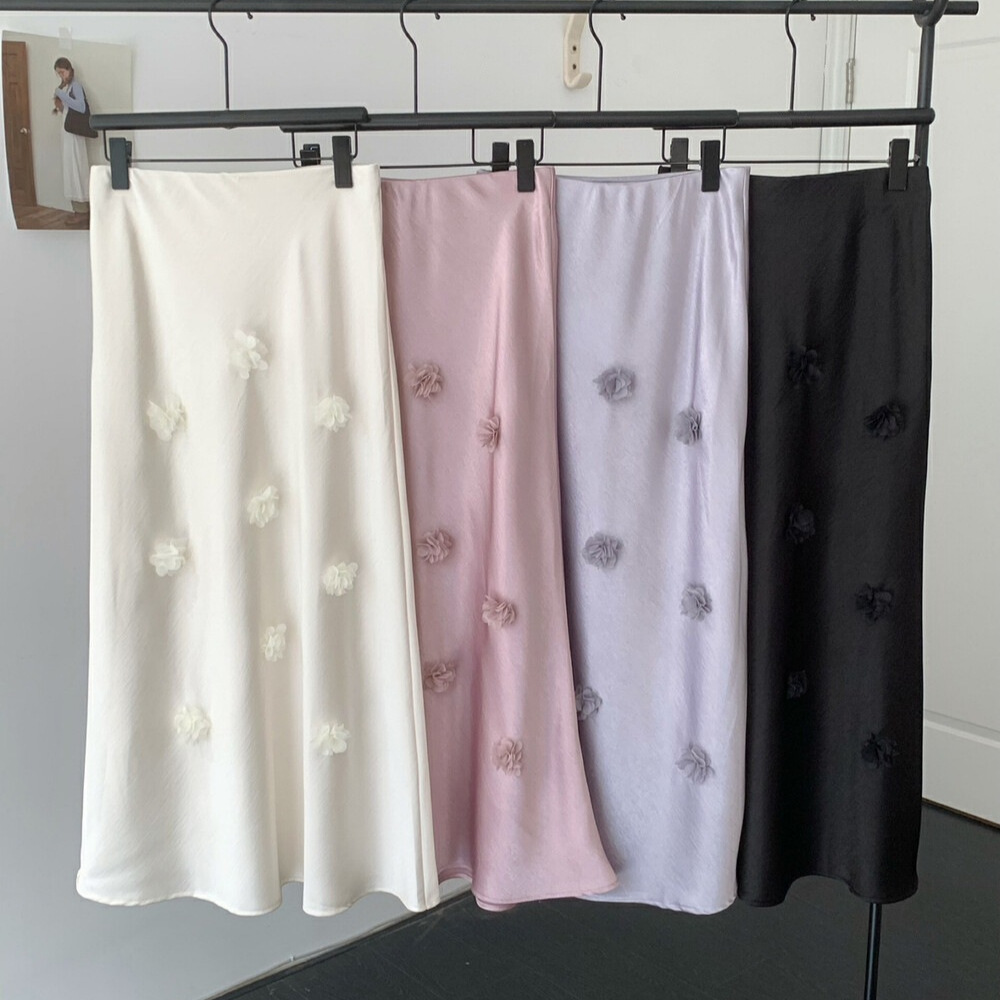 Gaya Nasional Rok Setengah Badan Ekor Ikan Satin Mudah Dipadu Padan Terlihat Langsing Desain Bunga Tiga Dimensi Pinggang Tinggi Longgar Gaya Korea 7 Warna
