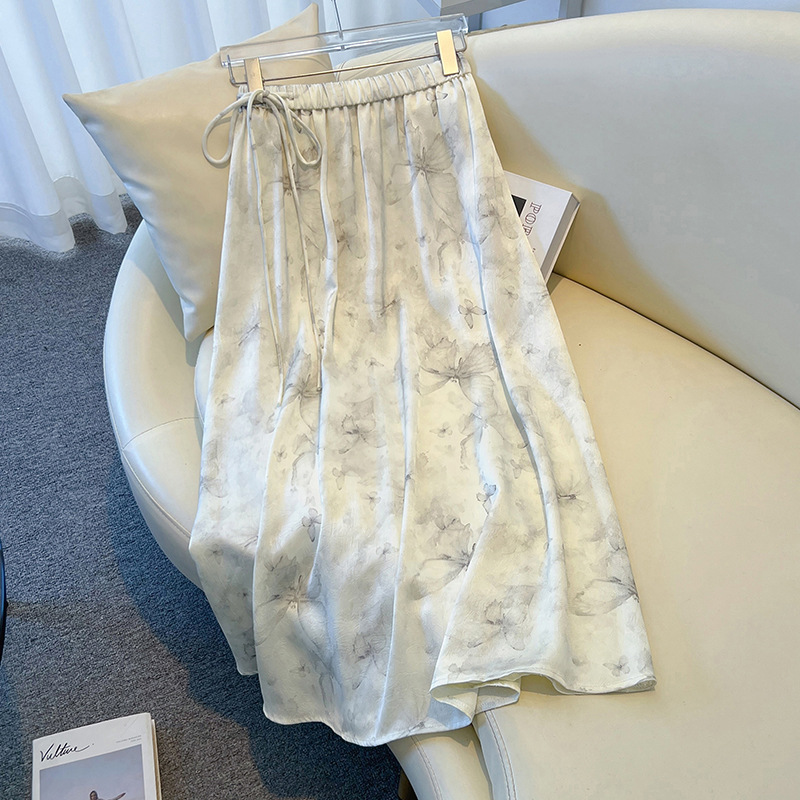 Rok Panjang Setengah Tubuh Bertali Bermotif Satin Asam Asetat Mudah Dipadu Padan Retro Gaya Tiongkok Baru Ukuran Besar Model Baru Musim Panas 2025
