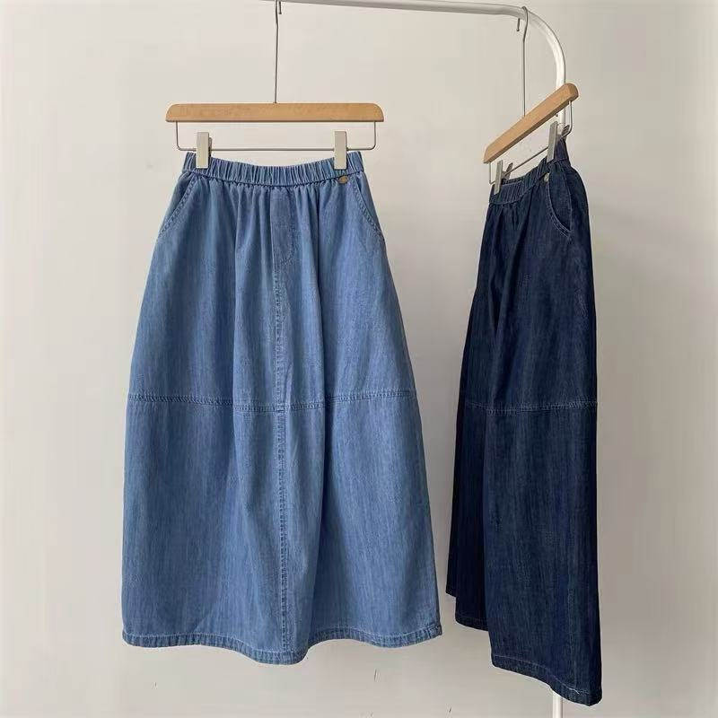 AliExpress eBay rok denim panjang menengah pinggang tinggi rok ramping a-line rok longgar serbaguna