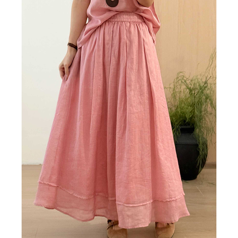Rok katun linen 10 warna ke dalam stok, warna solid baru dan rok linen panjang menengah longgar ukuran besar pinggang elastis rok lentera untuk wanita