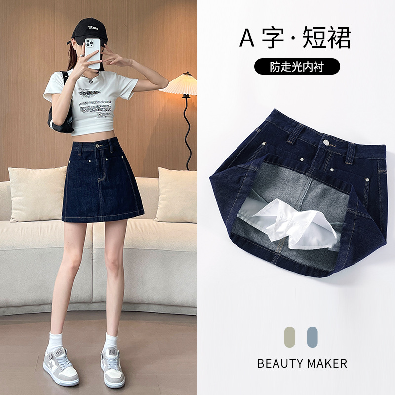 Rok Pendek Denim Rok Setengah Badan Menutupi Pinggang Kecil Huruf A Longgar Terlihat Ramping Pinggang Tinggi Model Baru Tahun 2025 Model Tipis Musim Panas Wanita
