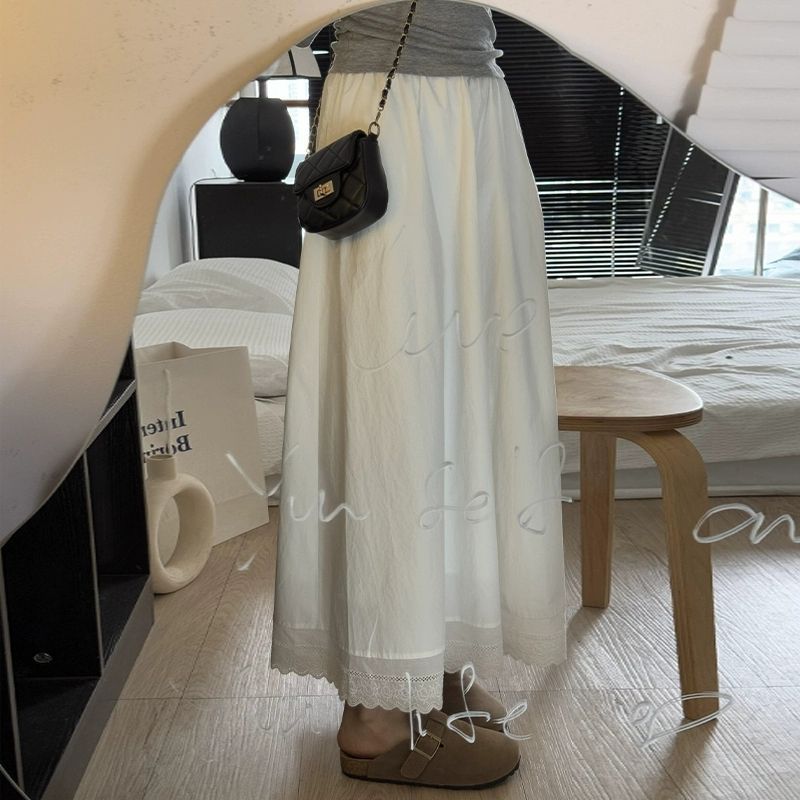 Rok Setengah Badan Pinggiran Renda Rok Peri Warna Putih Model Baru Musim Panas Wanita Rok Ukuran Besar Wanita Gemuk Rok Ukuran Kecil Model Korea Rok Panjang