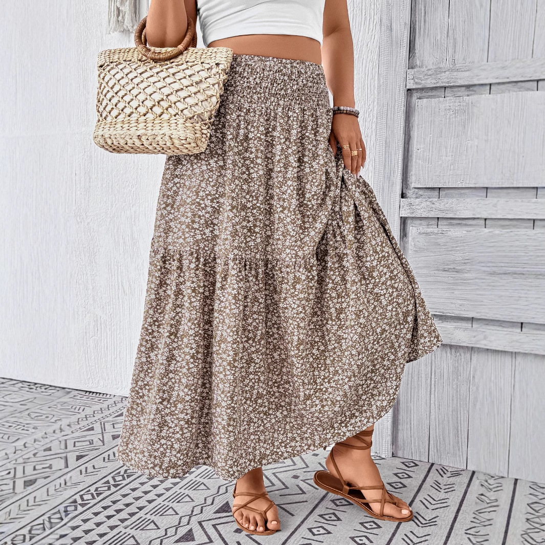 Pakaian Wanita Ukuran Besar Rok Setengah Badan Cetak Pinggang Tinggi Perdagangan Luar Negeri Lintas Batas Eropa dan Amerika Berdiri Sendiri Amazon Terlihat Kurus Rok Bunga Kecil