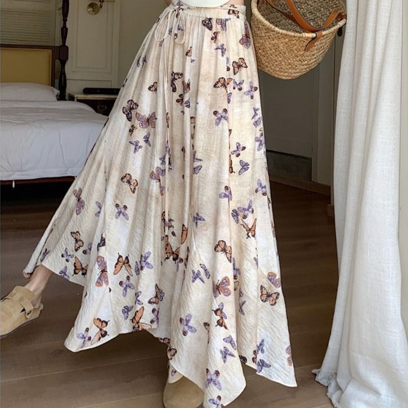 Rok Setengah Badan Bercorak Kupu-kupu Niche Gadis Gemuk Ukuran Besar Rok Panjang Menutupi Pinggul Longgar Rok A-Line Gaya Lembut Tidak Beraturan