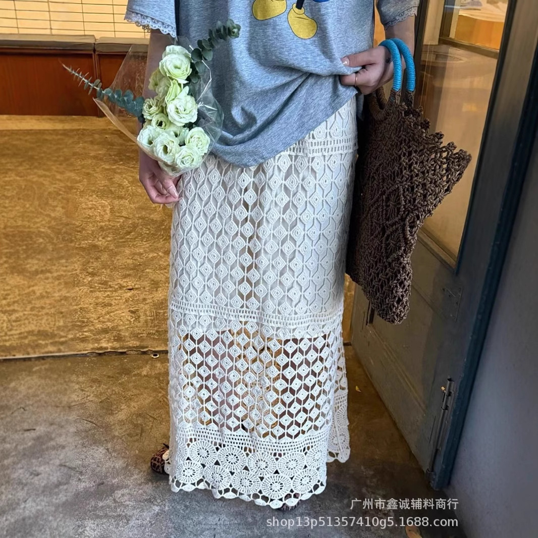 Rok Setengah Badan Bunga Berongga Terlihat Langsing Longgar Gaya Korea Rok Panjang A-line Gaya Liburan Pantai Niche Gaya Desain Musim Semi Wanita