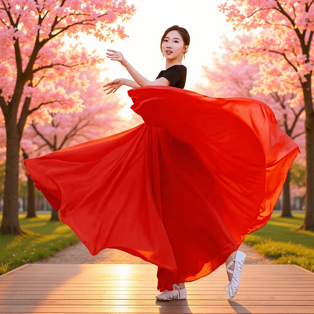 Rok ayun besar dansa 720 derajat sifon, rok lapis ganda pinggang tinggi warna polos ukuran besar musim semi dan musim panas