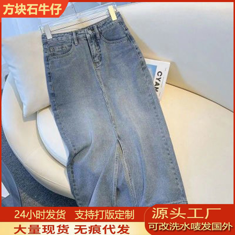 Rok Setengah Badan Terbelah Rok Denim Panjang Menutupi Pinggang Sedang Huruf A Pinggang Tinggi Ukuran Besar Model Baru Tahun Mudah Dipadu Padan Musim Panas Wanita