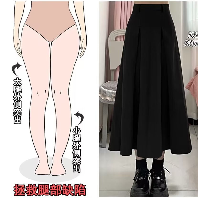 Rok Setengah Badan Warna Hitam Sosialita Elegan Terlihat Langsing Pinggang Tinggi Model Baru Musim Semi 2025 Rok Pendek Menutupi Pinggul Lipit Versi Korea Wanita Gemuk