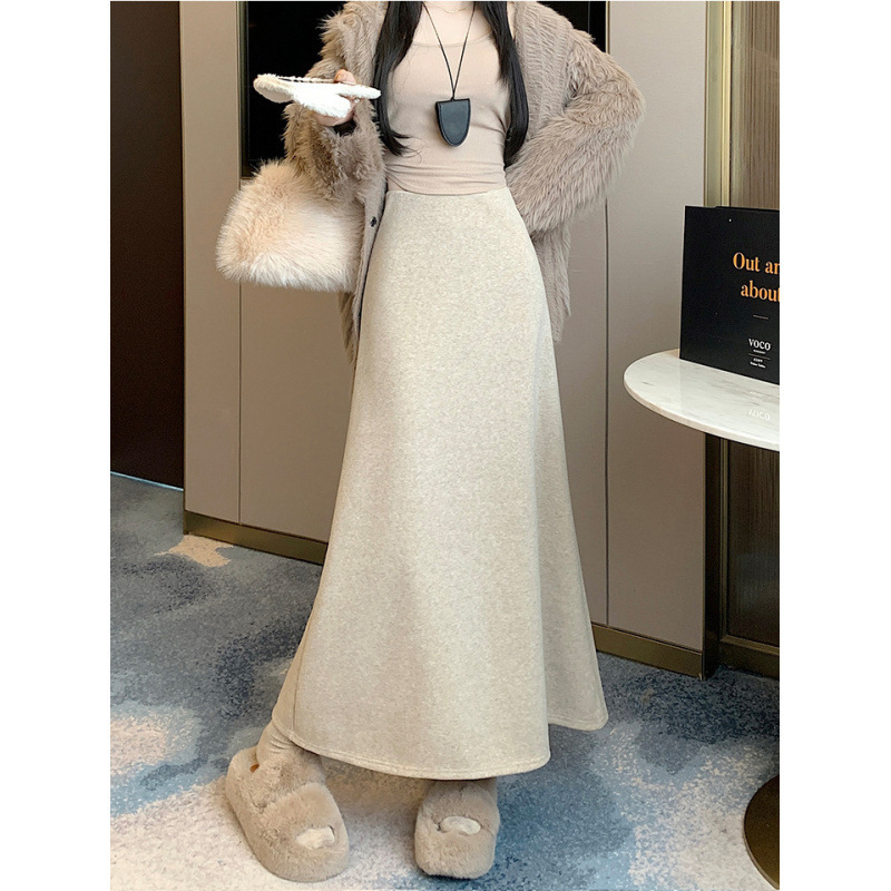 Rok Setengah Badan Ditambah Beludru Pinggang Tinggi Ukuran Besar Rok A-Line Terlihat Langsing Mudah Dipadu Padan Wanita Gemuk Model Baru Musim Gugur Musim Dingin 2025 Rok Panjang Niche Wanita