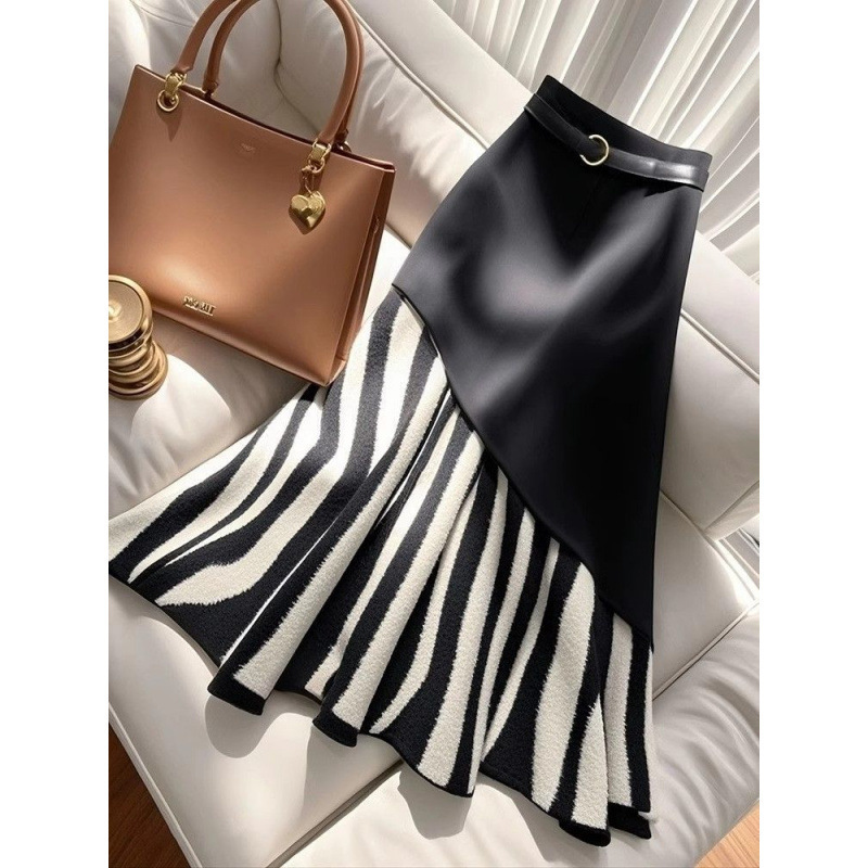Rok A-Line Ukuran Besar Model Baru 2025 Rok Setengah Badan Pinggang Tinggi Wanita Rok Ukuran Besar Model Panjang Rok Musim Semi Musim Gugur Terlihat Kurus