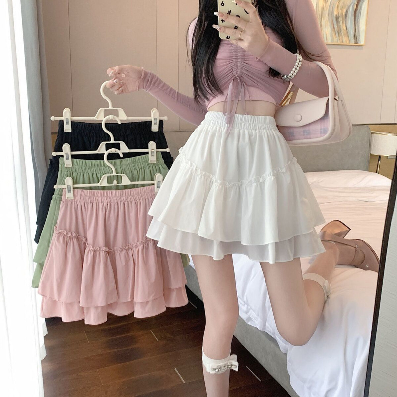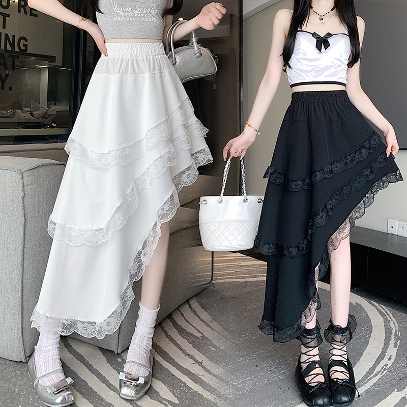 Rok Setengah Badan Mudah Dipadu Padan Gaya Desain Niche Pinggang Elastis Tidak Beraturan Musim Panas Manis Retro Banyak Lapisan Pinggiran Renda Ukuran Besar