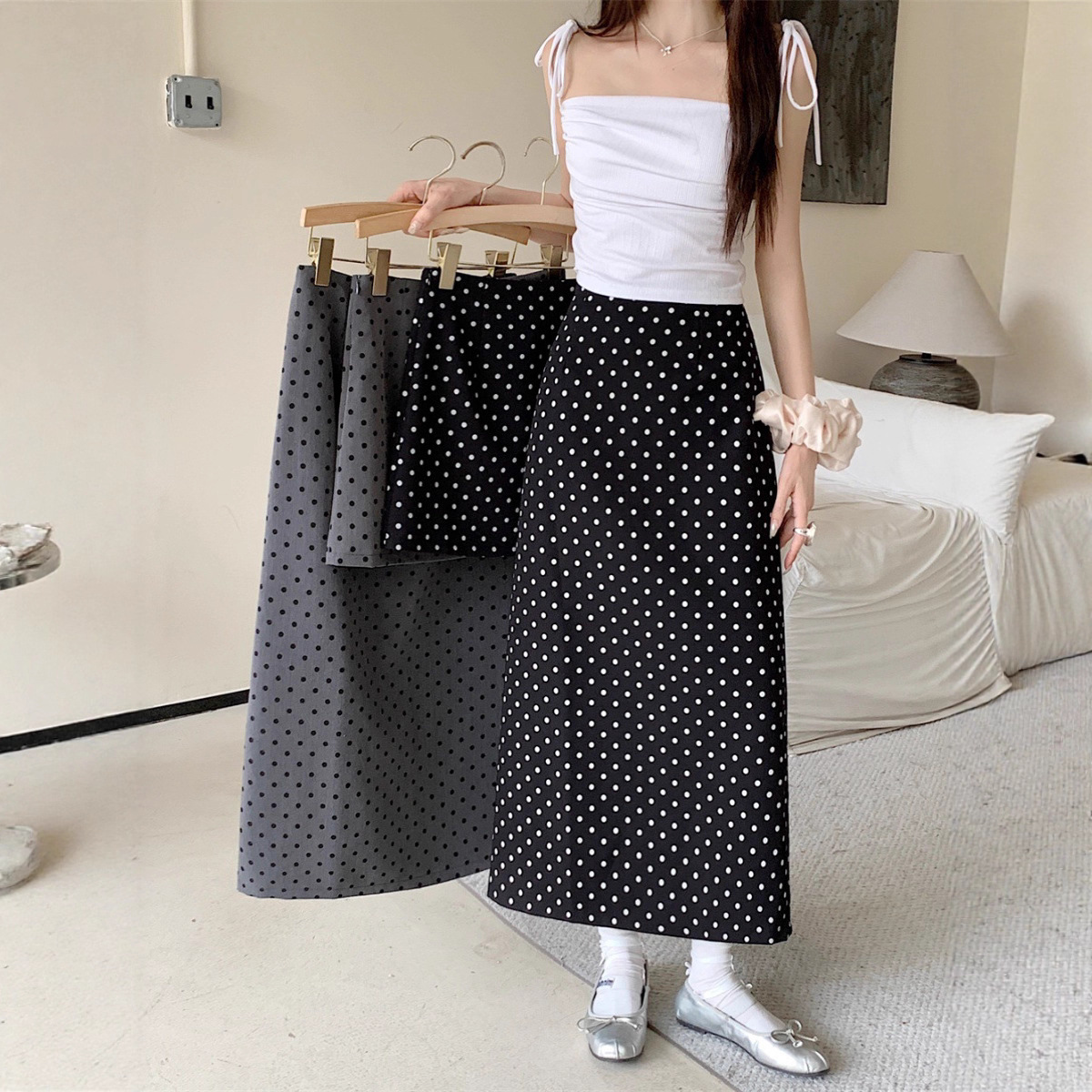 Rok Setengah Badan Poly Dot Manis dan Pedas Rok Panjang Wanita Terlihat Kurus Pinggang Tinggi Elegan Pinggang Ketat Abu-abu Kasual Ukuran Besar Ukuran Besar Musim Semi Musim Gugur