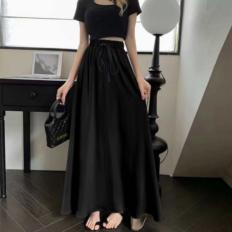 2024 baru rok a-line pinggang tinggi wanita, Rok kain setelan Musim Semi dan musim panas ukuran besar tali serut musim panas