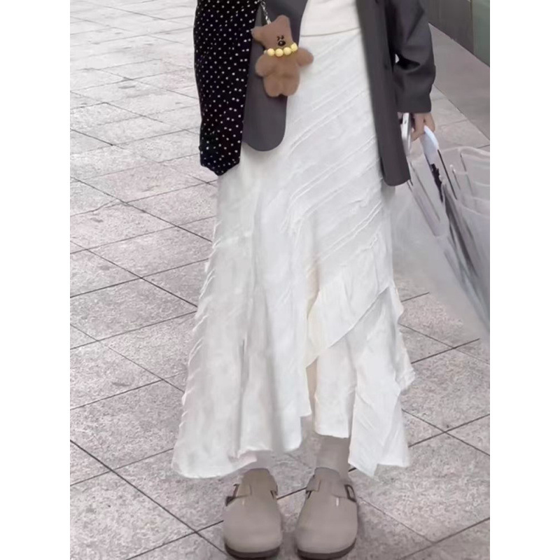 Shanli Dadi Rok Setengah Panjang Ekor Ikan Warna Putih Tidak Beraturan Ukuran Besar Rok Setengah Badan Bentuk Pir