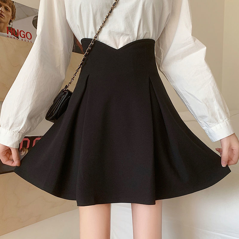 Rok Berlipat Hitam untuk Wanita Musim Semi dan Musim Panas Gaya Baru Rok A-line Kecil Pinggang Tinggi Ukuran Besar Anti Eksposur Rok Pendek Penutup Pinggul A-line