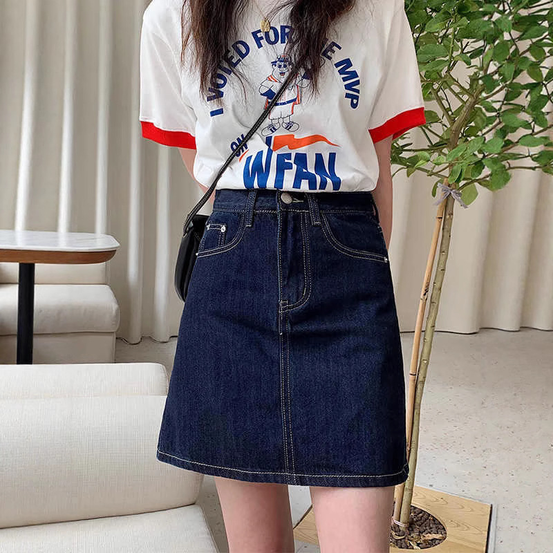 Rok Pendek Denim Pinggang Tinggi Rok Setengah Badan Menutupi Pinggul Huruf A Orang Kecil Terlihat Kurus Menutupi Perut Wanita Ukuran Besar Ukuran Besar Ukuran Tipis Musim Panas Wanita