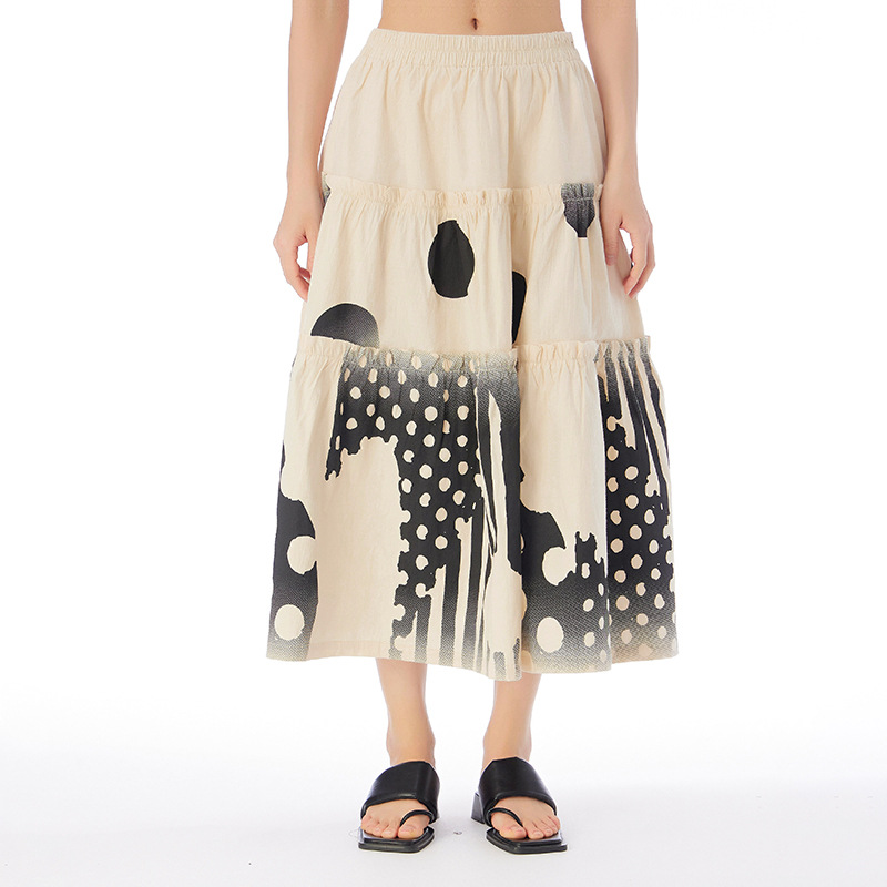 Rok motif polka dot elegan gaya Jepang Musim Panas 2024 rok pelangsing longgar wanita ukuran plus 31116 trendi