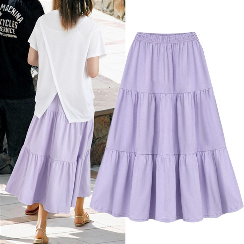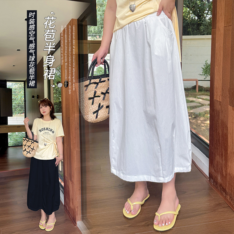 Rok Kue Ukuran Besar Musim Panas 2025 Rok Setengah Badan Pinggang Elastis Rok A-Line Mudah Dipadu Padan Modis Pinggang Tinggi Rok Panjang Terlihat Langsing 33032