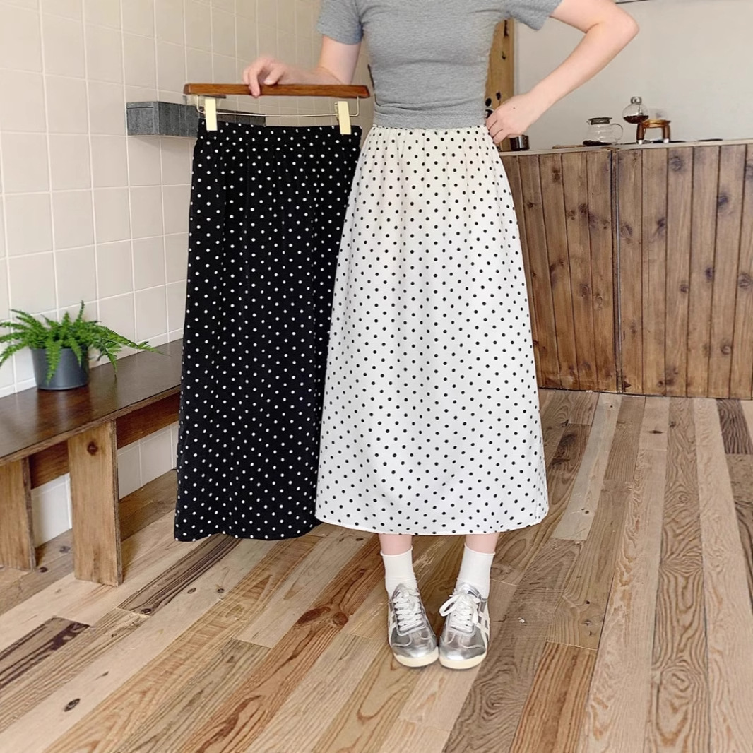 Rok Setengah Badan Kasual Pinggang Elastis Titik Belahan Belakang Model Baru Tahun 2025 Rok A-Line Model Panjang Sedang Model Tipis Musim Panas Wanita