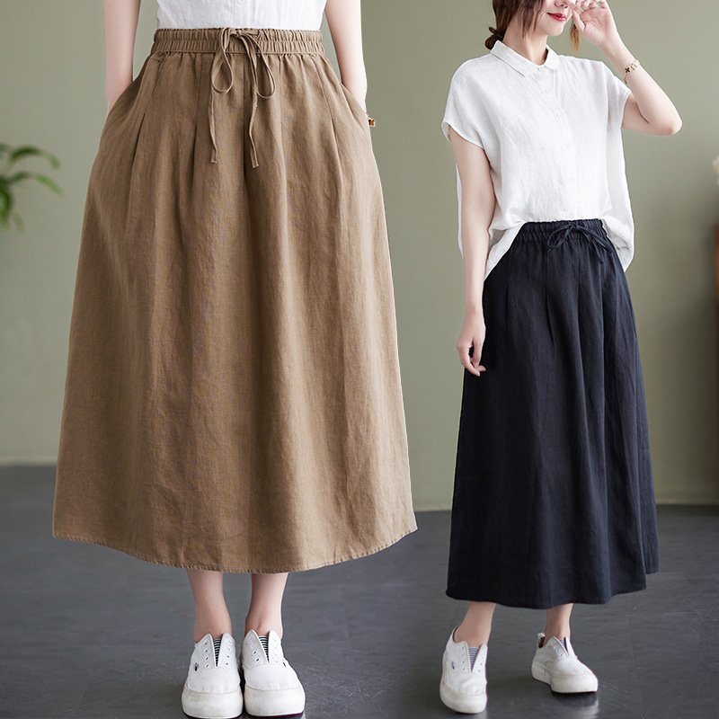Pakaian wanita ukuran besar, rok kasual longgar warna polos, temperamen semua-cocok Musim Panas 2024