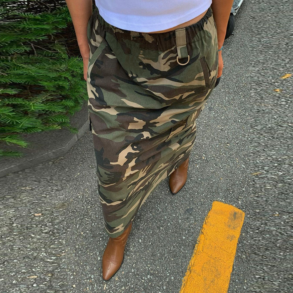 9149DD nazada pinggang elastis wanita musim semi dan musim panas saku luar ruangan mode unik mencuci rok