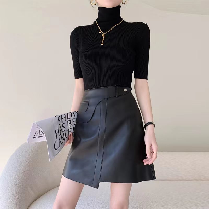 Rok Kulit Bulu Ritsleting Instagram Ukuran Besar Rok Pendek Pinggang Tinggi Model Baru Musim Gugur Musim Dingin Wanita Rok Setengah Badan Menutupi Pinggul A-Line Haining