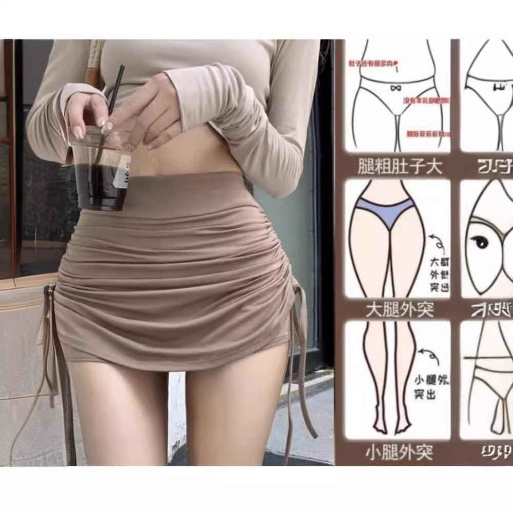 Rok Setengah Badan Lipit Tali Serut Rok Pinggul Gaya Murni Terlihat Kurus Ramping Seksi Gadis Pedas Ukuran Besar Wanita Musim Panas Rok A-Line Celana