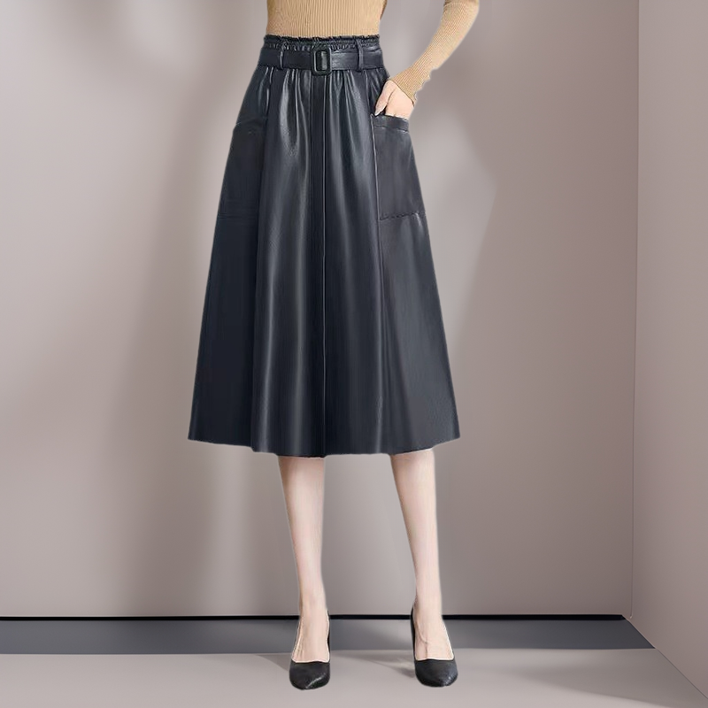 Rok kulit wanita kafrandi, rok lipit ukuran plus, lima poin, rok kulit wanita baru musim gugur dan musim dingin 2024