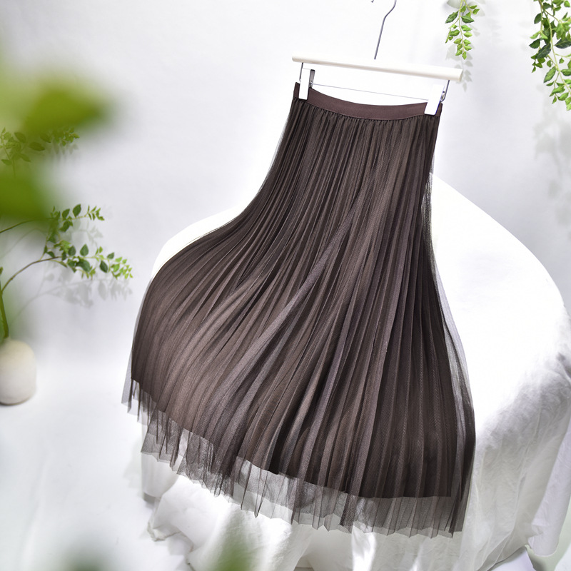 Rok lipit dua sisi, rok kasa musim panas ukuran plus, rok a-line 2023, penutup ramping, rok jala panjang setengah