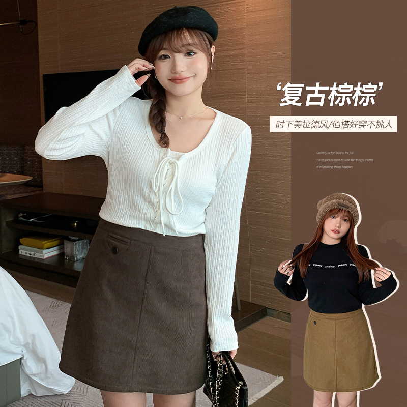 Rok korduroi pinggang tinggi wanita, rok pelangsing ukuran plus Musim Dingin 62800 [produk penawaran khusus tidak dikembalikan]