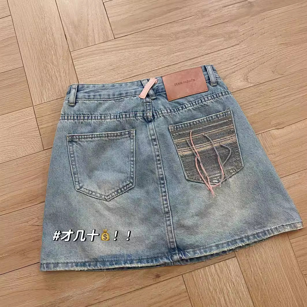 Rok Denim wanita pinggang tinggi, rok Denim kecil pinggang tinggi, untuk wanita, rok pinggul ukuran besar, rok pelangsing musim panas, desain bordir a-line
