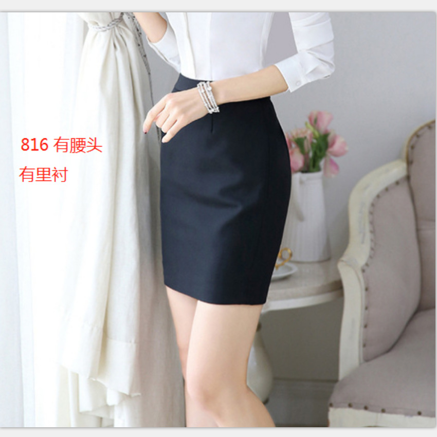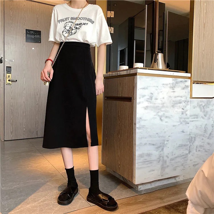 Rok pendek musim gugur dan musim dingin, rok pinggul hitam panjang menengah, rok a-line ramping modis sederhana musim gugur dan musim dingin