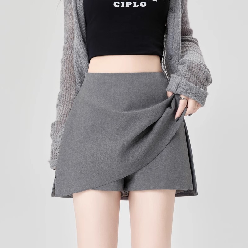Rok Setengah Badan Setelan Ritsleting Abu-abu Wanita Musim Panas Model Baru 2025 Celana Kulot Menutupi Pinggang Huruf A