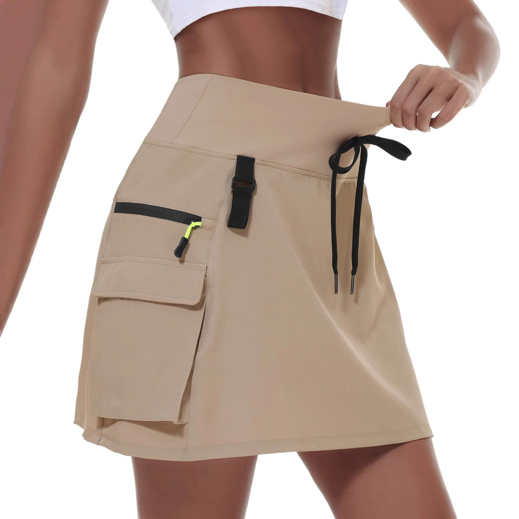 Rok trekking rok pendek golf pinggang tinggi pakaian formal kasual dengan saku ritsleting